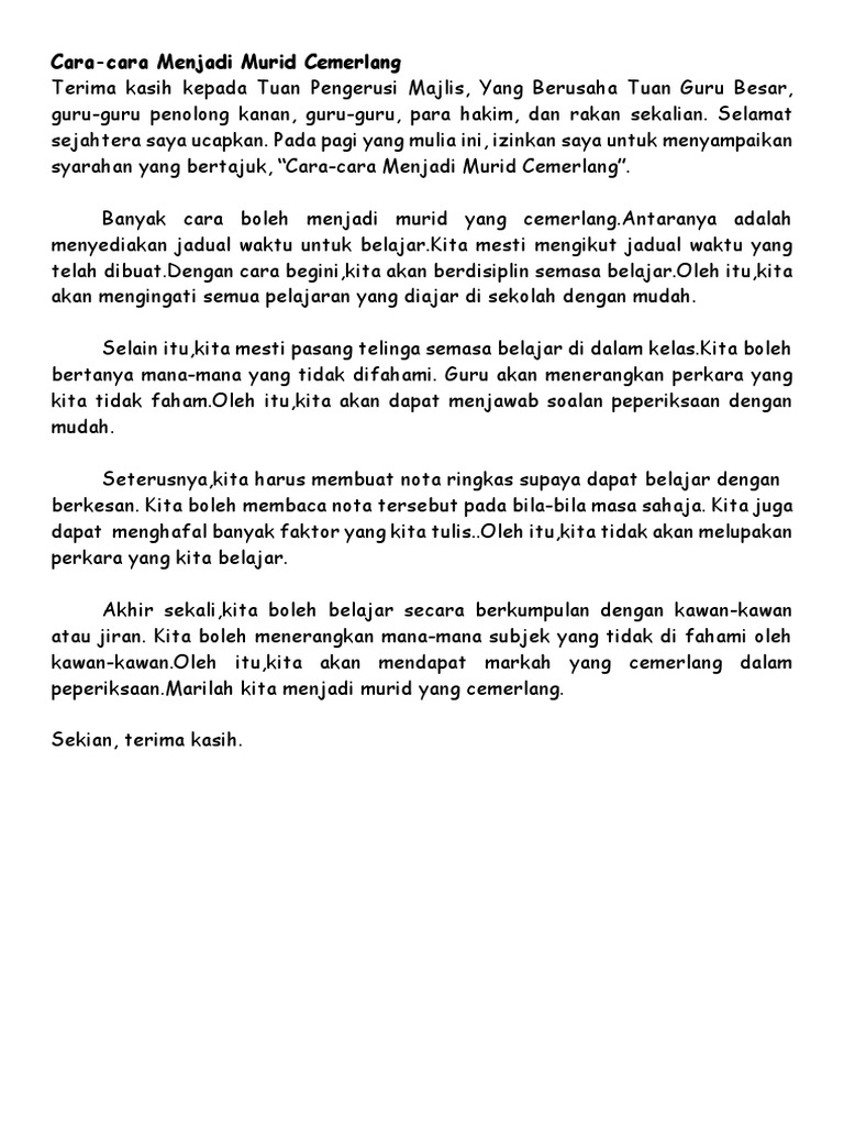 Contoh Karangan Syarahan Cara Cara Menjadi Murid Cemerlang