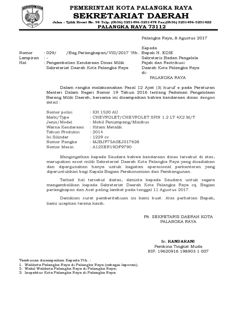 Contoh Surat Penarikan Kendaraan Dinas Aneka Contoh Otosection